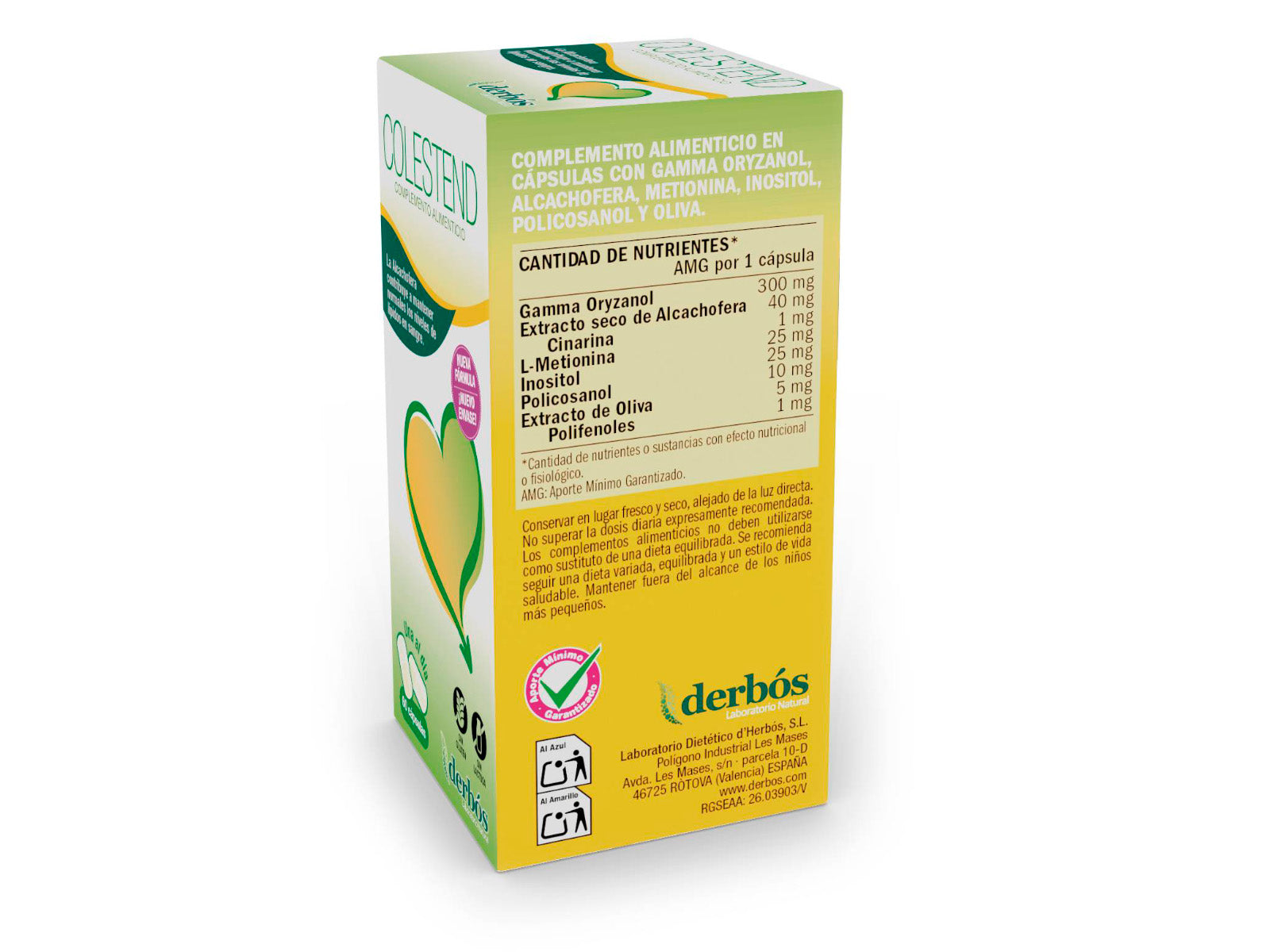 Complemento alimenticio en cápsulas con gamma oryzanol, alcachofera, metionina, inositol, policosanol y oliva.